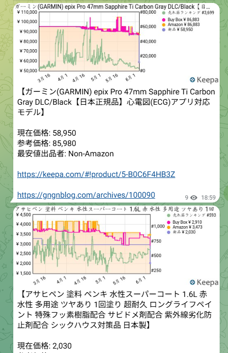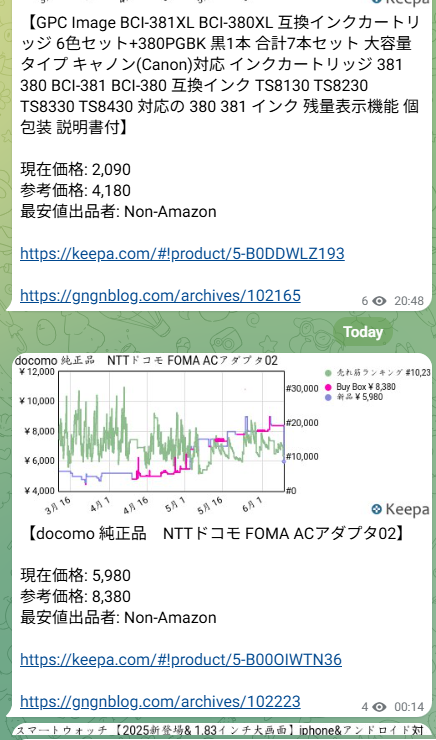 Keepaより圧倒的に早く刈り取り商品の通知を受け取ることができます。