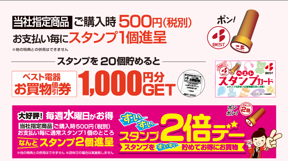 ベスト電器には、メンバーズカードスタンプカードがあります。