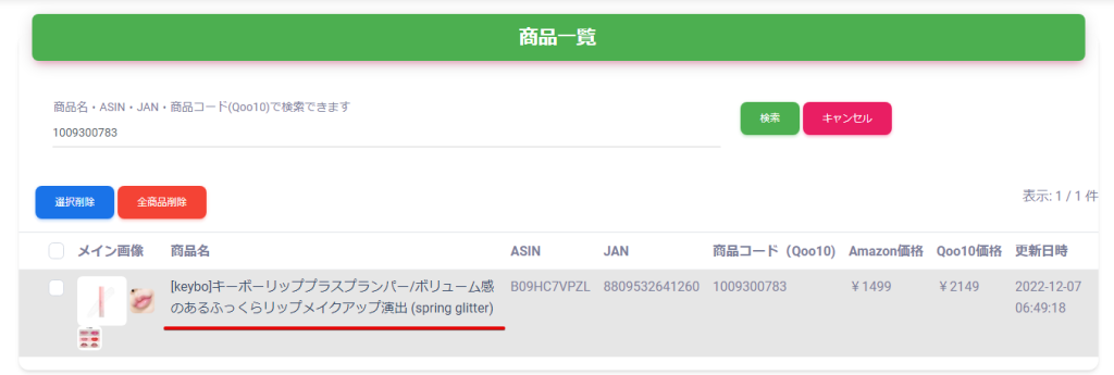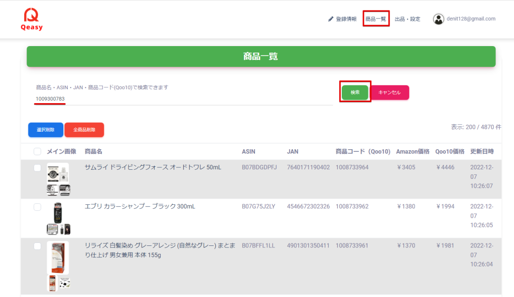 次にその商品番号をQeasyで検索します。