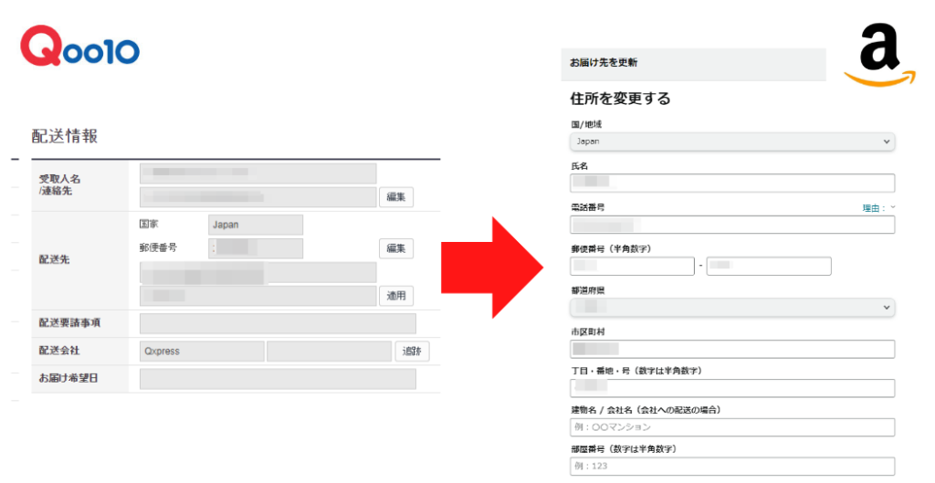 あとは、Qoo10の注文者の住所をAmazonのお届け先に入力し購入するだけです。