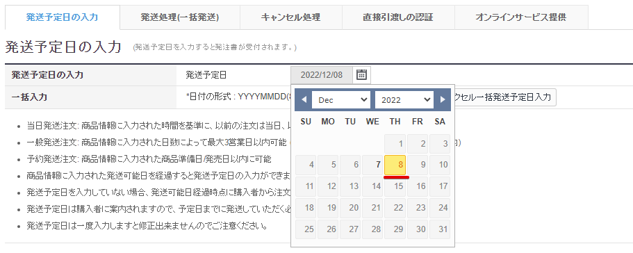 最後に注文内容を確認する際に、お届け予定日を確認し、Qoo10の配送予定日に入力します。
