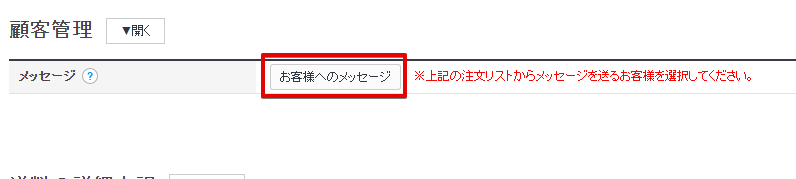 次に「顧客管理」の「お客様へのメッセージ」をクリックします。