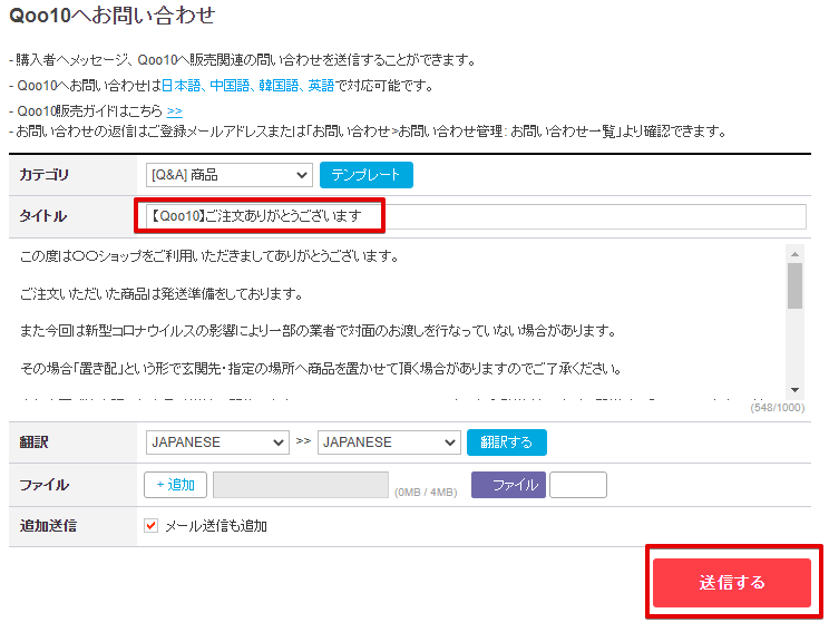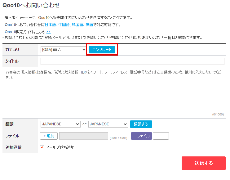 それぞれテンプレートを記載しておきますので、Qoo10のテンプレートに登録しておきましょう!
