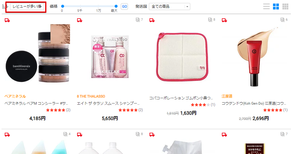 レビューがあるということは、他の店舗ですでに何回か売れているということですので、このリストを増やしていくことで売れる商品のみ出品することができるようになります。