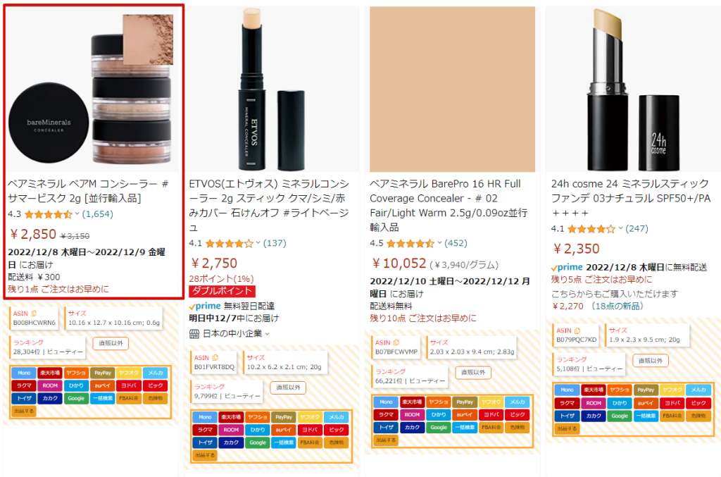 「Amazon」やQoo10に出品できないワード「美白」など、Amazonとわかるから、出品できないからという理由で対象外にするのはもったいないです。