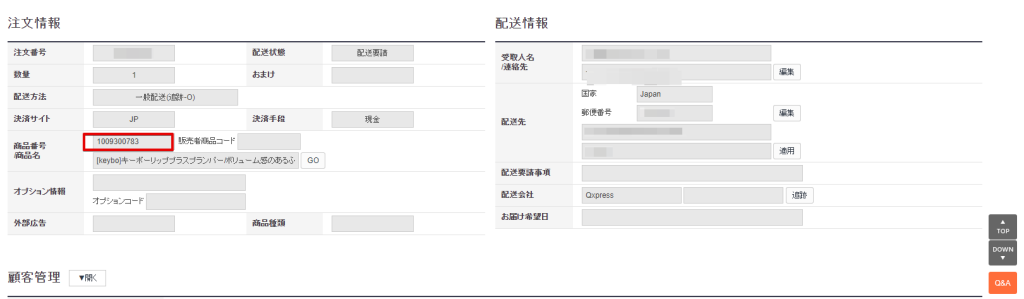 まずはじめに売れた商品の商品番号をコピーします。