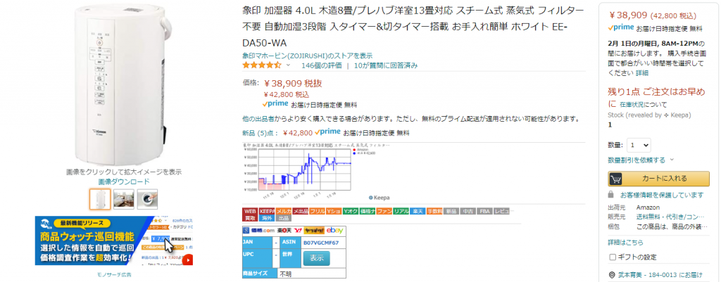 まずKeepaに登録したい商品を探してきます。