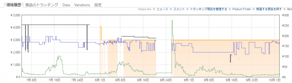 クローム拡張機能である、Keepaと連携させたグラフです。