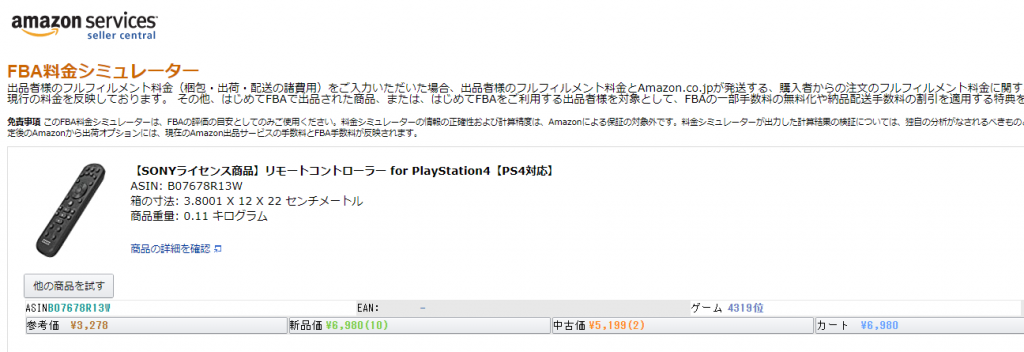 Amazon FBA Calculator WidgetはAmazonの商品ページから直接FBA料金シュミレーターに飛べる拡張機能です。
