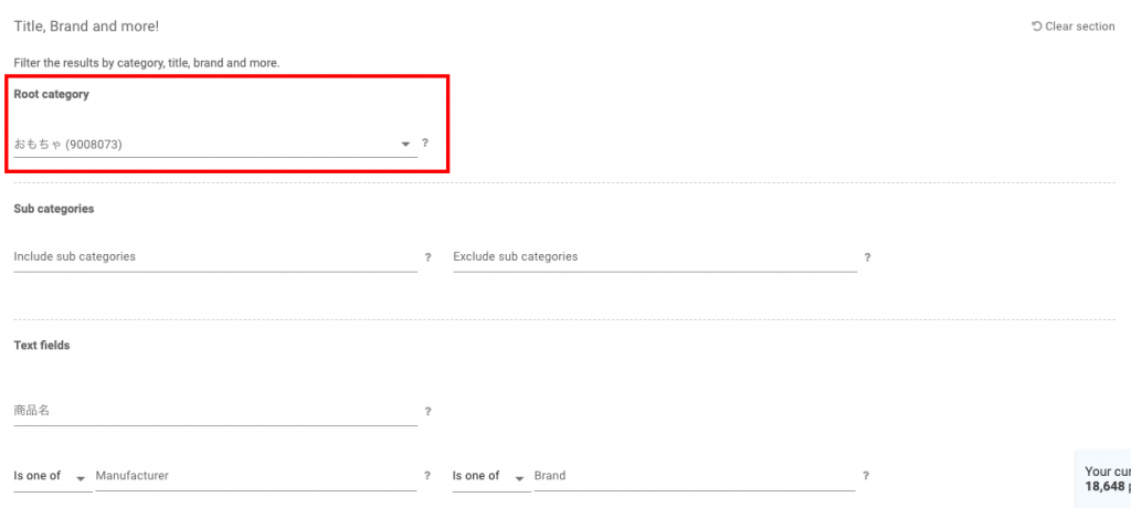 1つ例として、おもちゃのカテゴリの商品を登録していきます。