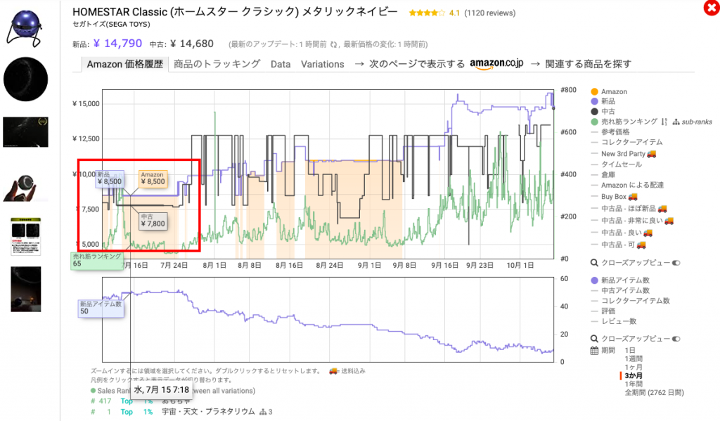Amazon刈り取りでは、特にKeepaの有料アカウントである必要はありませんが、仕入れ判断をするためには必ずグラフを確認する必要がありますので、有料アカウントを持っておくことをお勧めします。