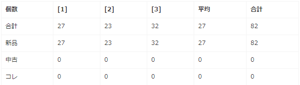 3ヶ月間の平均売り上げ個数は27個で合計個数が82個となります。