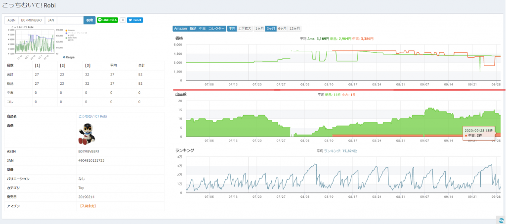 もし、20/09/29 21時 時点では2人なのに20/09/29 03時に中古出品者が1人になっていた場合は