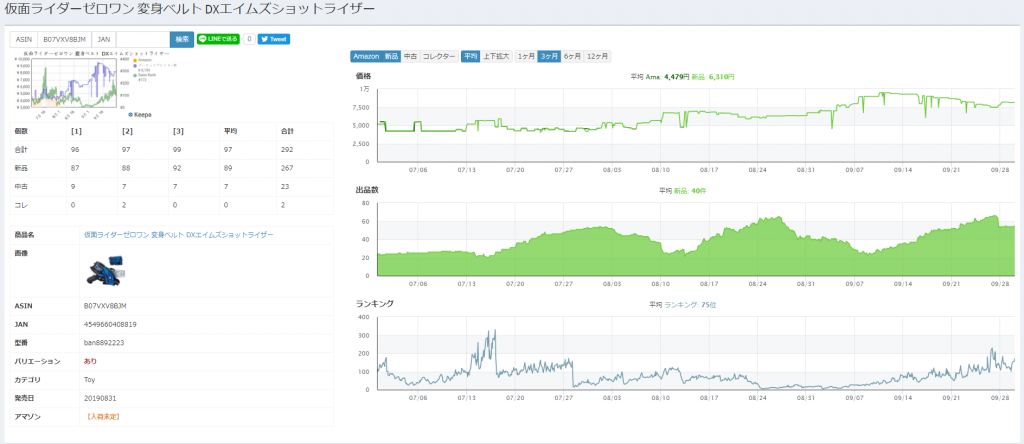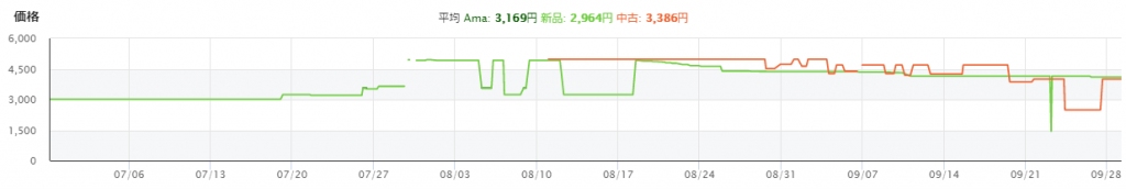 ですが、急にAmazonが販売し始めたりすることで急に相場の4218円前後に戻る可能性もあります。