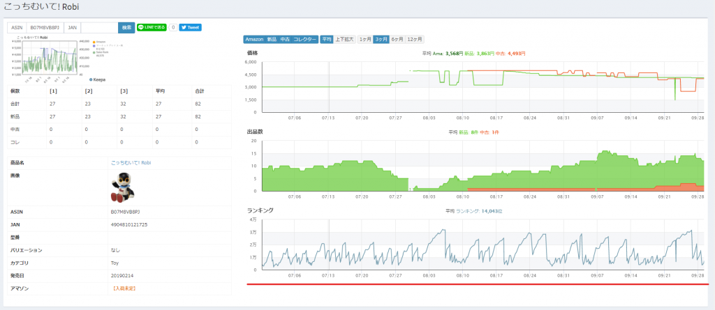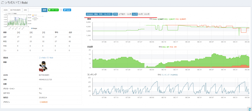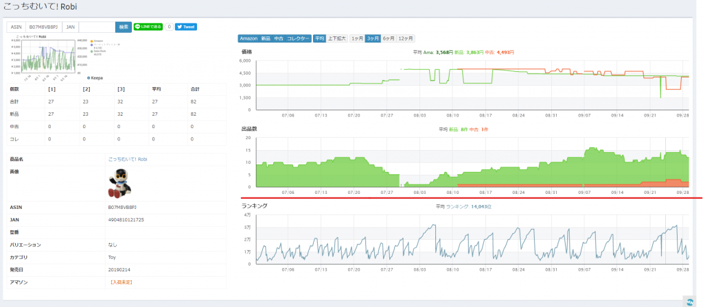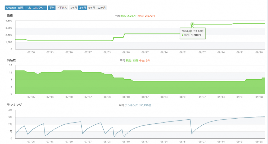 回転は良くないですがグラフを見る限り3ヶ月に8回ほどは売れていて、現在の価格になってから1ヶ月以上経過します。