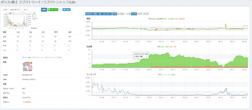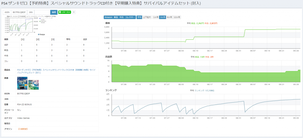 そのため「新品」が売れているのか、「中古」が売れているのか判断する必要があります。