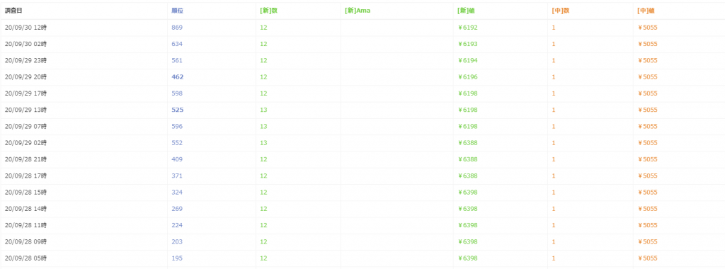 値上がりしている商品を見るときは、その価格になってから売れているかの確認(ランキングの確認)