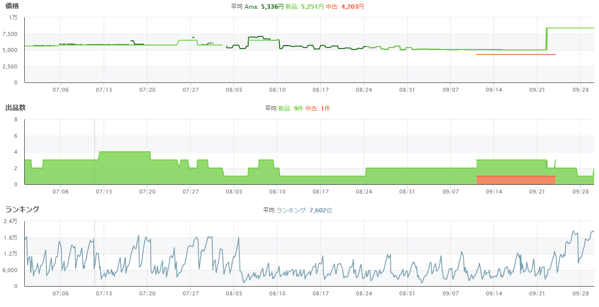 こちらの商品は7月のはじめは4218円だったのですが、9月後半は8150円になっています。