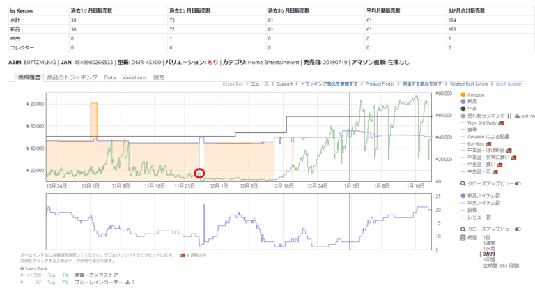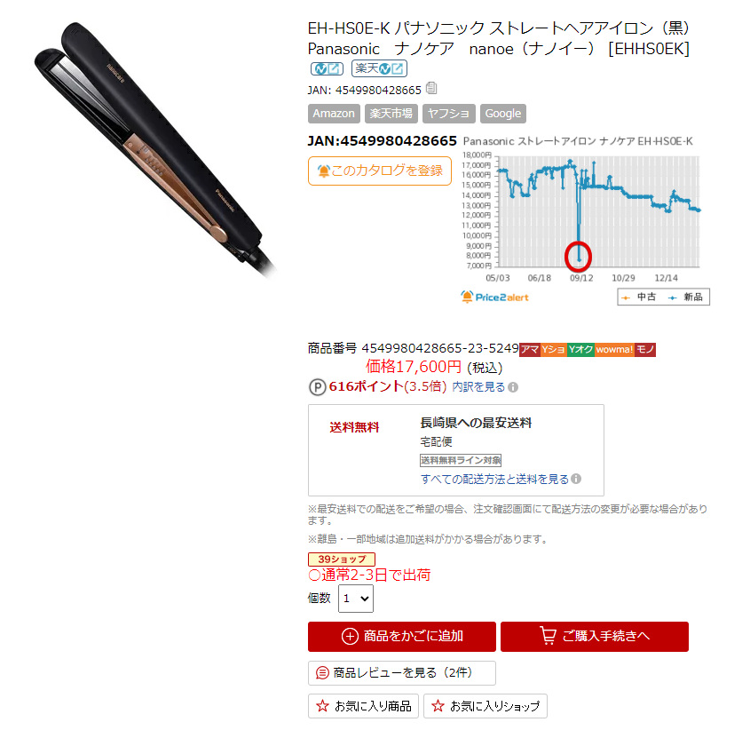 Price2alertの拡張機能を追加すると画像のように価格推移が表示されます。
