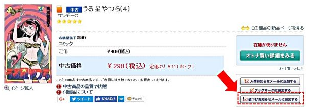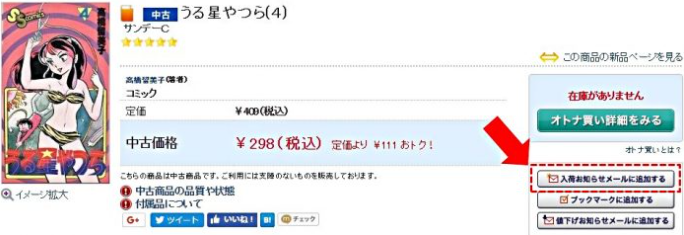 ブックオフオンラインでは、入荷通知メールを利用することができます。